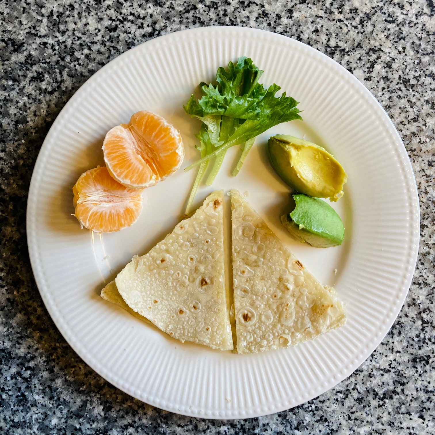 - Arrange 2 quesadilla slices, 1 mandarin orange, ¼ avocado, and ¼ cup lettuce on each plate to serve.